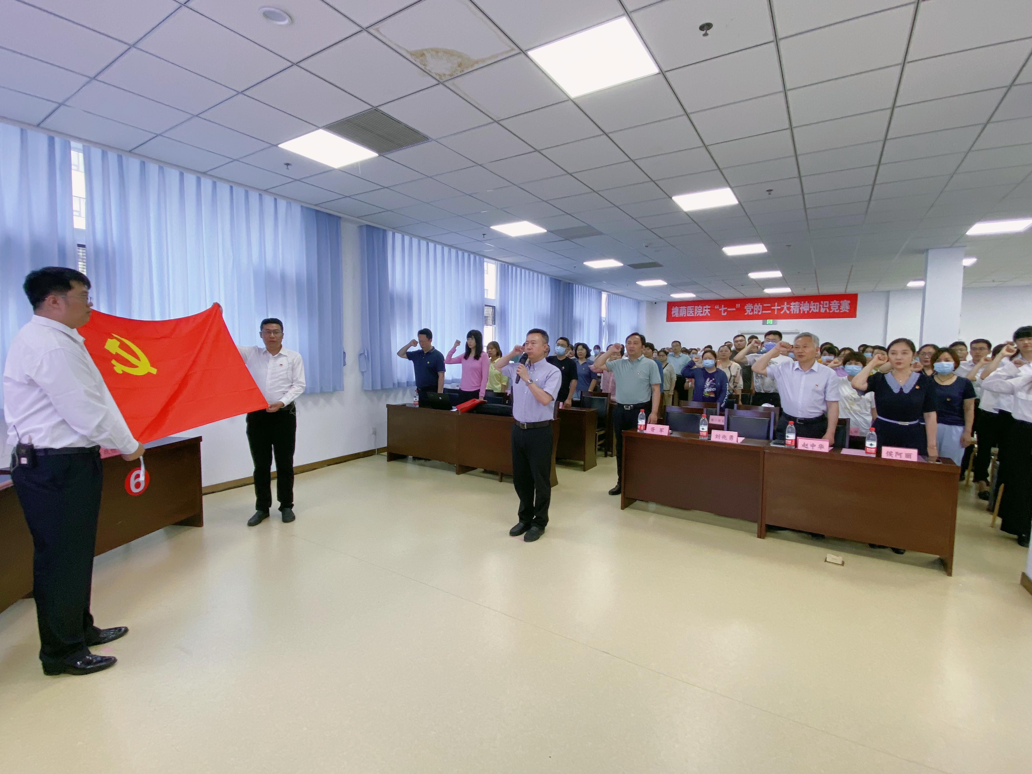 为庆祝中国共产党成立102周年,激励广大党员干部初心不渝、坚定前行,检验党的二十大精神学习效果,强化政治信念,助推工作实践,6月28日,槐荫医院开展了“庆七一”系列活动——“以赛促学展风采 踔厉奋发新征程”党的二十大精神学习教育知识竞赛。