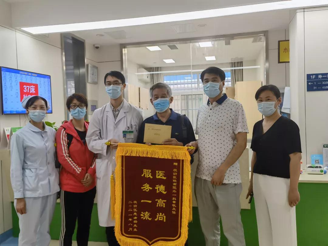 近日,槐荫医院南院就收到了这样一份特殊的“礼物”——已出院患者杨先生及家属,将一面鲜红的锦旗和一封亲笔书写的感谢信送至外一科副主任景凯及全体医护人员的手中,对其精湛的医术与优质的服务表示高度赞扬和诚挚感谢。