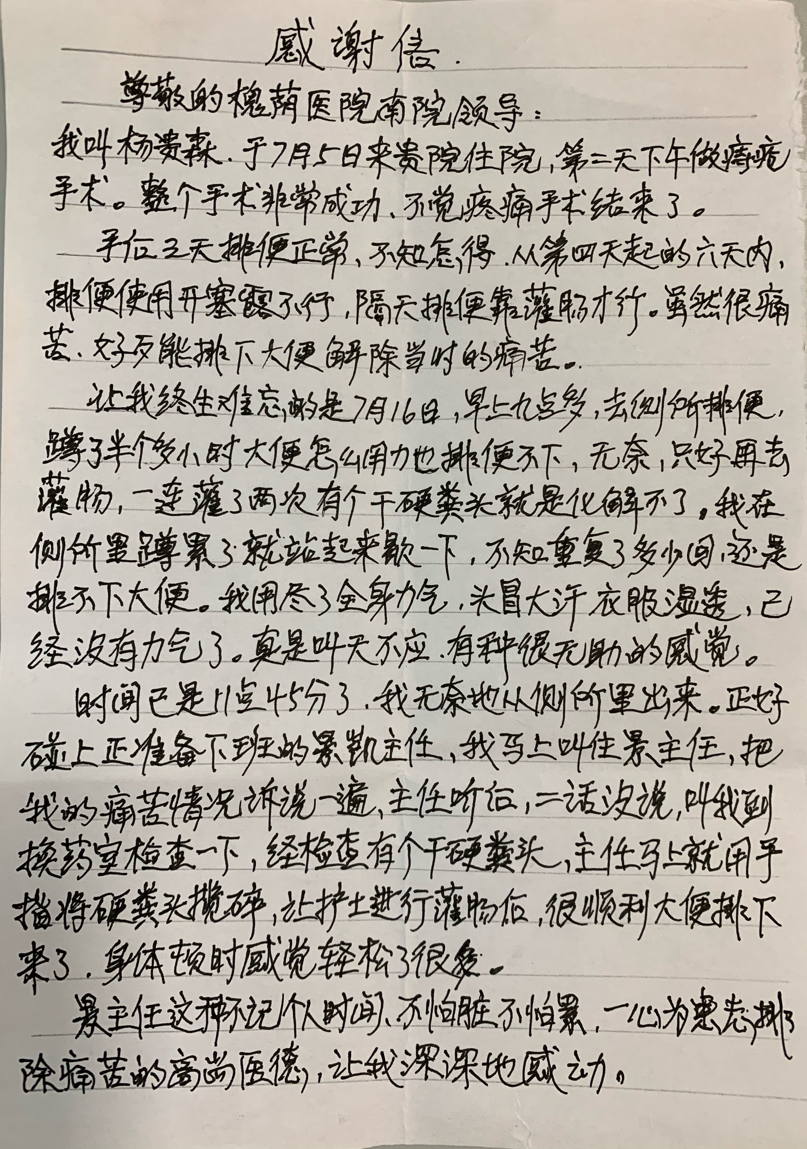 我为群众办实事|小小感谢信 浓浓医患情