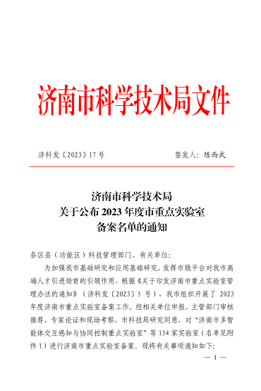 近日,济南市科学技术局公布了2023年度济南市重点实验室备案名单,我院“济南市运动功能障碍康复与评估重点实验室”成功获批,这是我院首个市级重点实验室,标志着我院在科研平台建设中取得了新突破。
