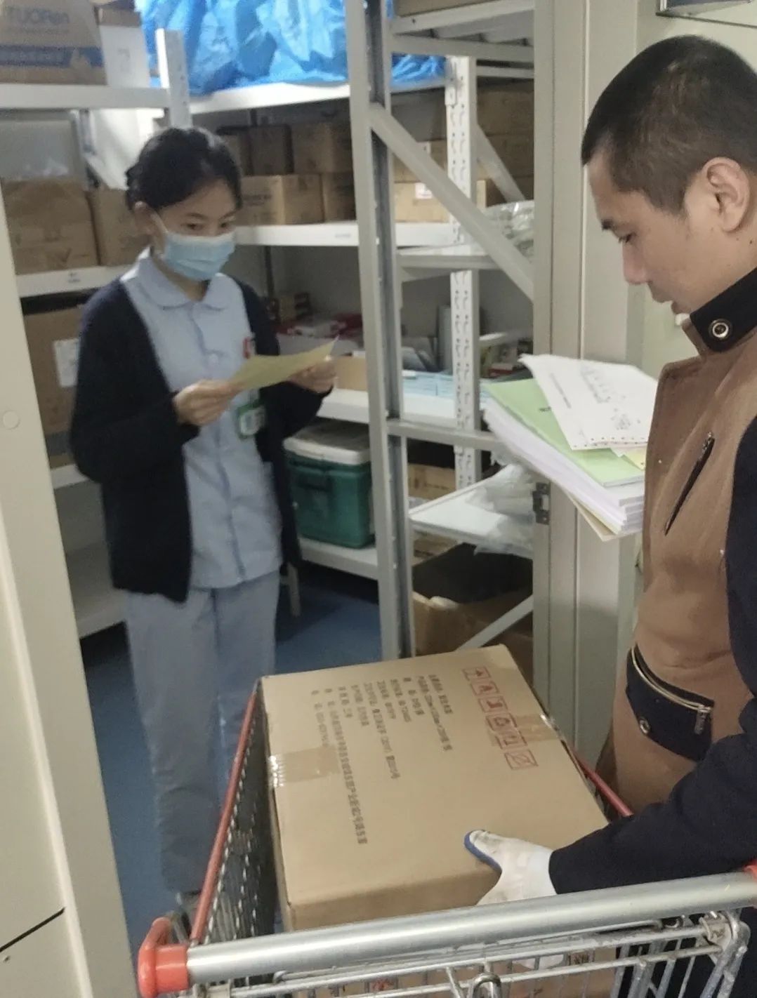 通过年前纬十一路院区关于物资下送的试运行阶段,总务科于今年3月份,在院部正式展开了物资下送工作。总务科利用物资管理系统,接收各科室提报的领料计划,确保每一件物品都能准时、准确地送达到需要的科室人员手中,保障医院各项工作的顺利进行。尤其为临床科室人员节省了领料时间,更好地服务患者。