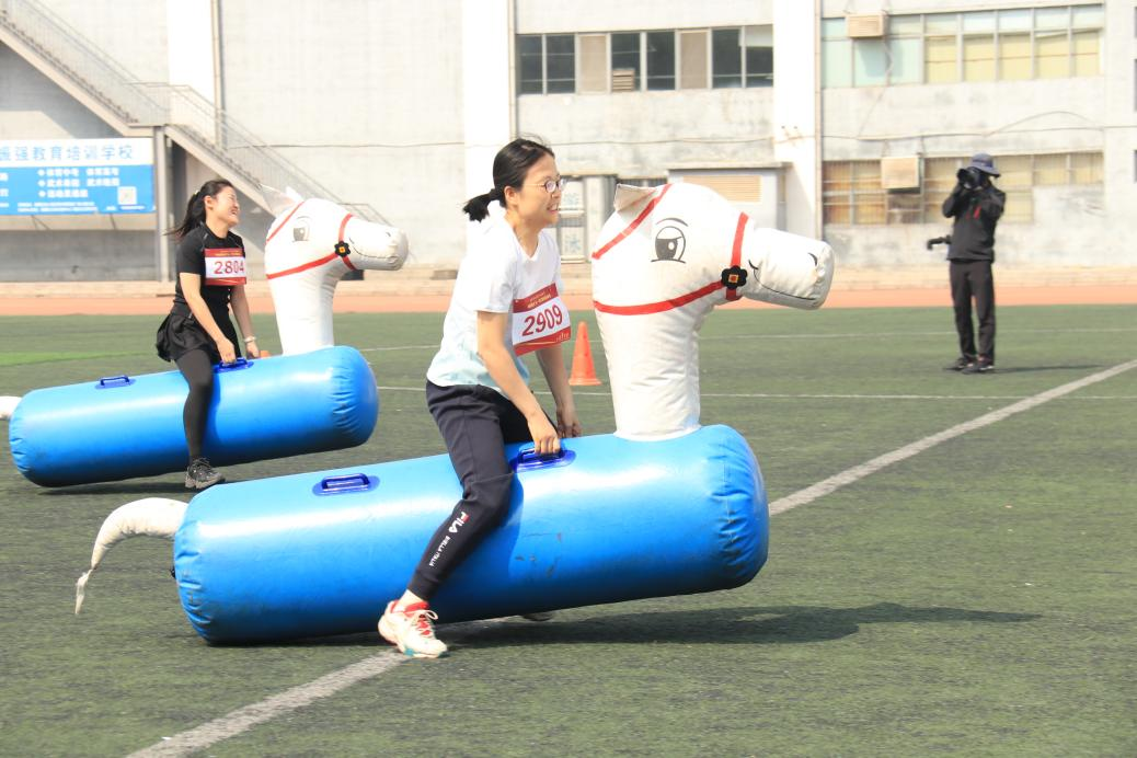 在快乐大脚和一马当先比赛中,选手们需要和巨大道具磨合,或奋力蹦跳或全速冲刺,道具没有阻碍选手们争先的脚步,反而激发出无穷的斗志!她们行动笨拙但仍努力比拼,令人感动。趣味投篮、数字套圈和足球飞镖则是考验选手们动作的精准度和敏捷度,我院选手精神抖擞、力争上游,浑身都在使劲的样子不由使人捧腹。