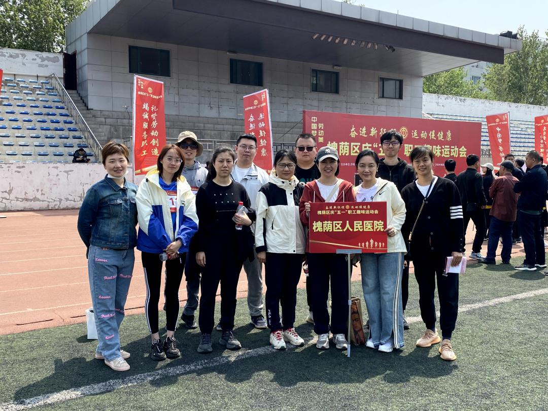 为加强职工精神文化建设,丰富广大职工体育文化生活,带动日常工作积极氛围,提高全体凝聚力及向心力,由济南市槐荫区总工会、济南市槐荫区体育事业发展中心、中共济南市槐荫区委区直机关工作委员会、济南市槐荫区教育和体育局共同主办的“中国梦·劳动美 槐荫区庆“五·一”职工趣味运动会”于4月20日上午在槐荫体育场隆重开幕。来自全区系统、街道办事处的33支代表队齐聚一堂,共进行了10个个人项目、6个集体项目名次的争夺。医院工会积极带队组织职工参加,并取得了优异的成绩。选手们通力合作、配合默契,充分感受到了体育竞技带来的快乐。