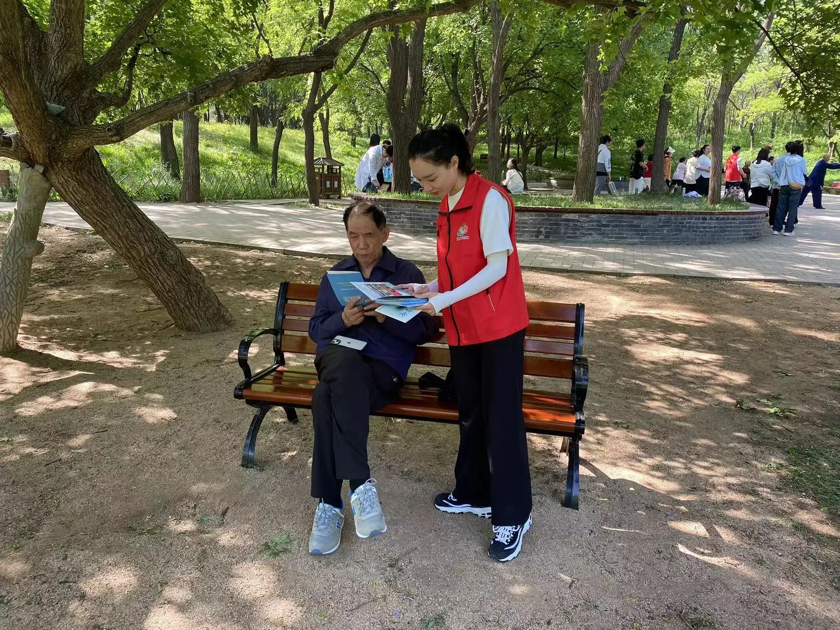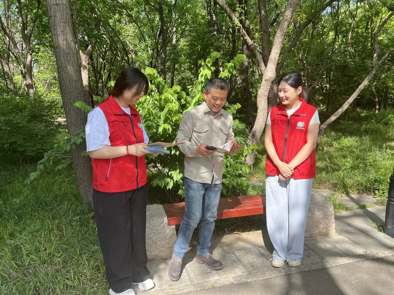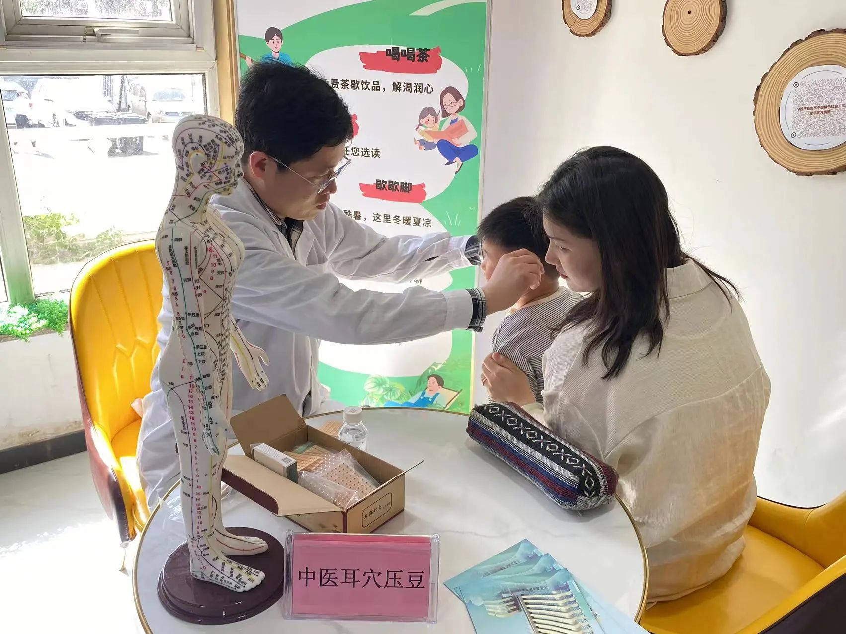 4月26日上午9点,医院青年医务工作者与千佛山西路社区青年志愿者在千佛山景区为景区工作人员及游客提供了中医适宜技术耳穴贴压,让群众切身感受到中医药“简便验廉”的特色优势。
