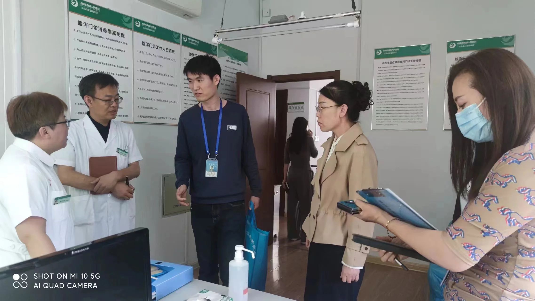 4月28日下午,由槐荫区疾病预防控制中心传染病与地方病防制部副科长李益博带队,到济南市槐荫人民医院针对狂犬病暴露处置工作和腹泻病门诊开诊开展督导检查。医院纪委书记张淼、公共卫生科主任刘海燕、感染性疾病科主任肖振东、护士长谯妍等陪同检查。