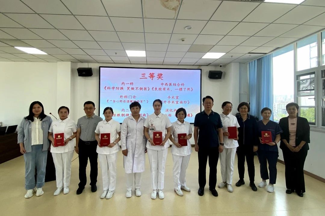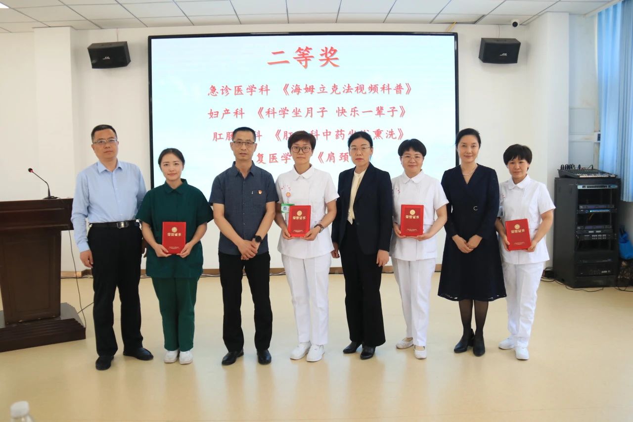 本次健康科普作品征集大赛共有29部作品参加,经初赛选拔,最终12部作品成功入围复赛。护理部主任孙立华宣读评选规则,大会上,各科室选送参赛作品围绕常见疾病的健康指导、慢病康复、急救知识、延续护理等内容进行展播,大赛遵循公平、公正、公开的原则,参会人员通过线上投票程序进行评选,经过激烈角逐,急诊医学科《心肺复苏视频科普》、中西医结合科《黄金四分钟》荣获一等奖;急诊医学科《海姆立克法视频科普》、妇产科《科学坐月子 快乐一辈子》、肛肠二科《肛肠科中药坐浴熏洗》、康复医学科《肩颈操》荣获二等奖;内一科《科学防跌 笑做不倒翁》、中西医结合科《良肢有术,一摆了然》、外科门诊《低温也能烫伤吗“当心那些温暖的伤害”》、手术室《揭开手术室面纱》、内二科《预防跌倒神器三部曲》、消化内科《防治血栓 让爱畅通》荣获三等奖。