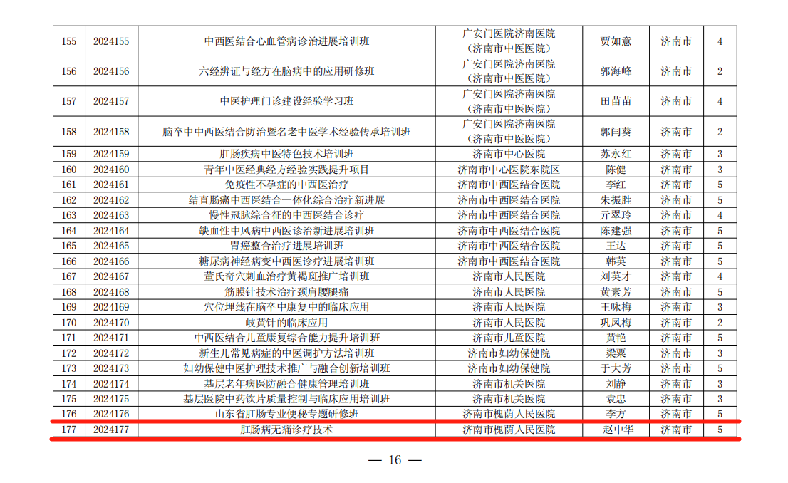 近日,山东省卫生健康委员会公布了2024年度国家级和省级中医药继续教育项目,我院获批3项省级中医药继续教育项目,分别为《山东省肛肠专业便秘专题研修班》、《肛肠病无痛诊疗技术》和《热敏灸技术培训班》。项目涵盖重点专科、重点专业等多层次高水平平台,培训面覆盖肛肠科、针灸推拿等学科类别,获批项目数量再创新高。
