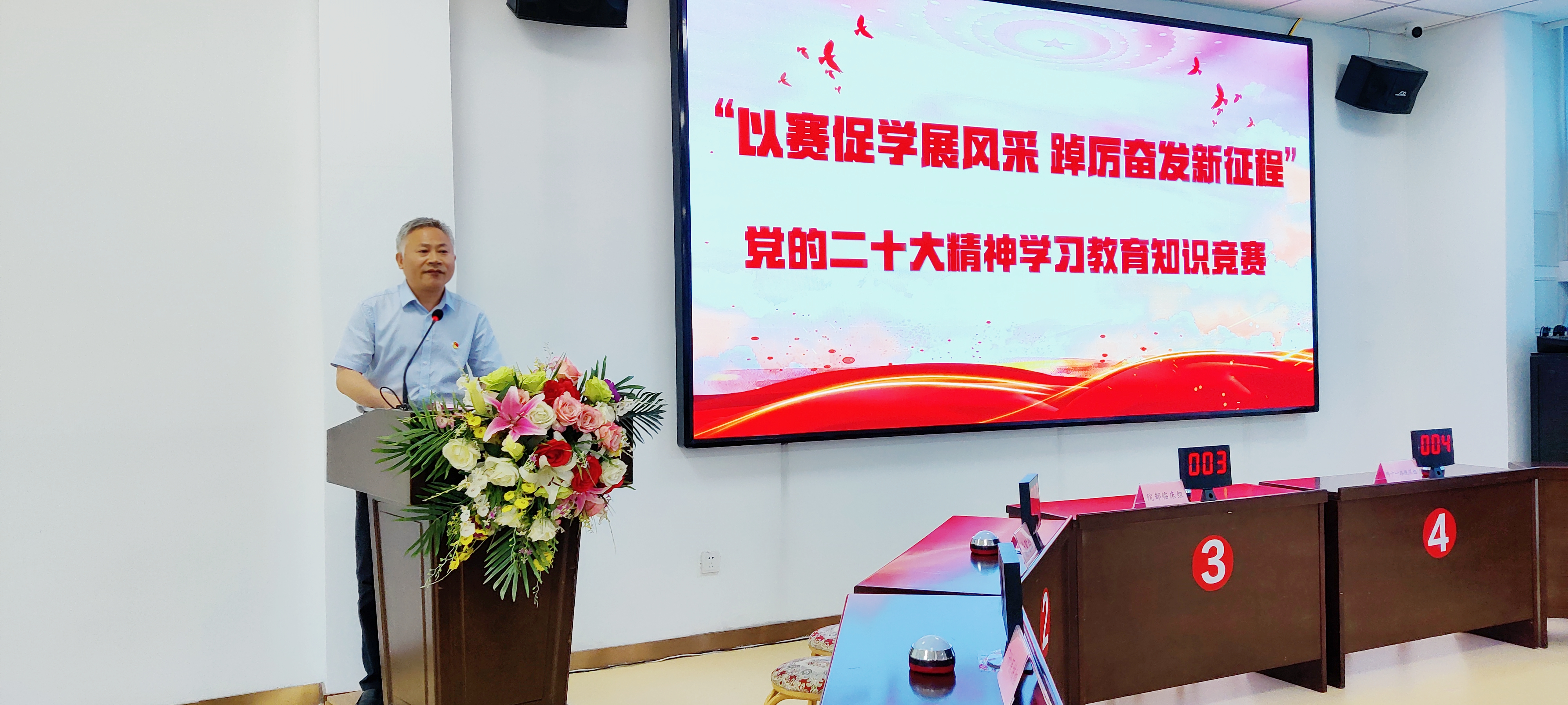 党委副书记、院长赵中华进行致辞讲话,他指出这次竞赛有三层非常特殊的意义,第一层意义在于以赛促学,使用竞赛这个有效抓手助力党员干部深入学习党的二十大精神;第二是以学促行,用党的二十大精神凝聚踔厉奋发、勇毅前行的力量;第三是以行促效,让党员干部以更加坚定的信念跟党走、持之以恒增本领,切实把党的二十大精神转化为服务人民群众健康、推进医院高质量发展的强大动力。