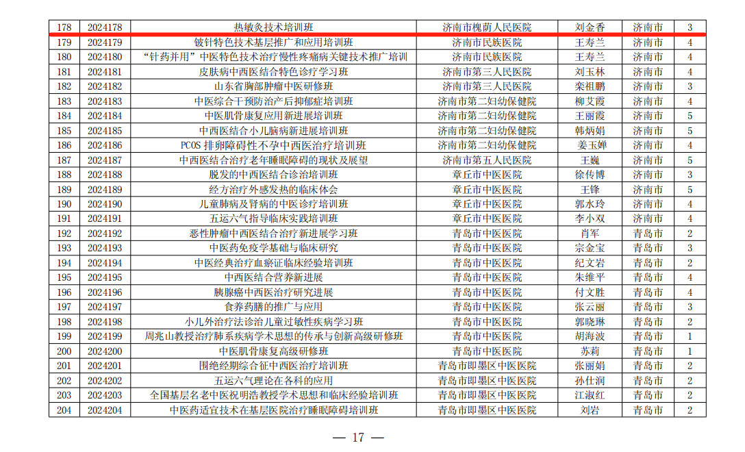 近日,山东省卫生健康委员会公布了2024年度国家级和省级中医药继续教育项目,我院获批3项省级中医药继续教育项目,分别为《山东省肛肠专业便秘专题研修班》、《肛肠病无痛诊疗技术》和《热敏灸技术培训班》。项目涵盖重点专科、重点专业等多层次高水平平台,培训面覆盖肛肠科、针灸推拿等学科类别,获批项目数量再创新高。